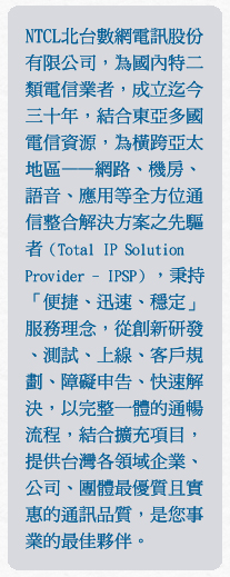 北台數網電訊從上個世紀創立至今已滿三十年,不僅見證著電訊業的轉變,也在轉變中,與時代同步,除了雲端通訊、上網,更增加雲端簡訊、傳真等多元化服務,在疫情遠距上班期間為許多企業客戶提供便捷服務。未來,我們也思索著各種AI整合項目,期盼與你共同前進AI新世代。